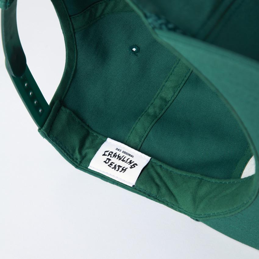 Crawling Death Green Snapback Cap with Embroidered Patch.Structured 5 Panel Construction with a High Front and Braid.